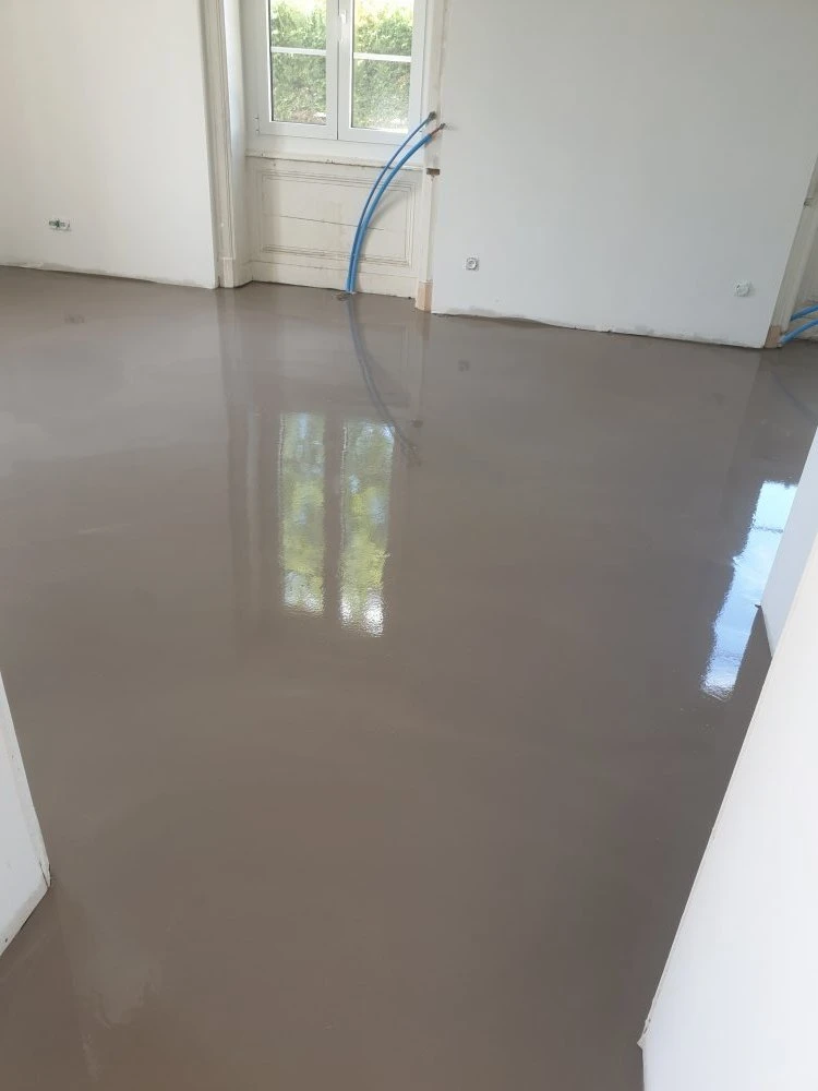 Etant donné qu'il y avait un vieux parquet au sol il faut donc passer un primaire d'accroche spécial avant de couler le ragréage qui permettra d'absorber les distortions du vieux parquet et ainsi avoir un bon maintien au sol