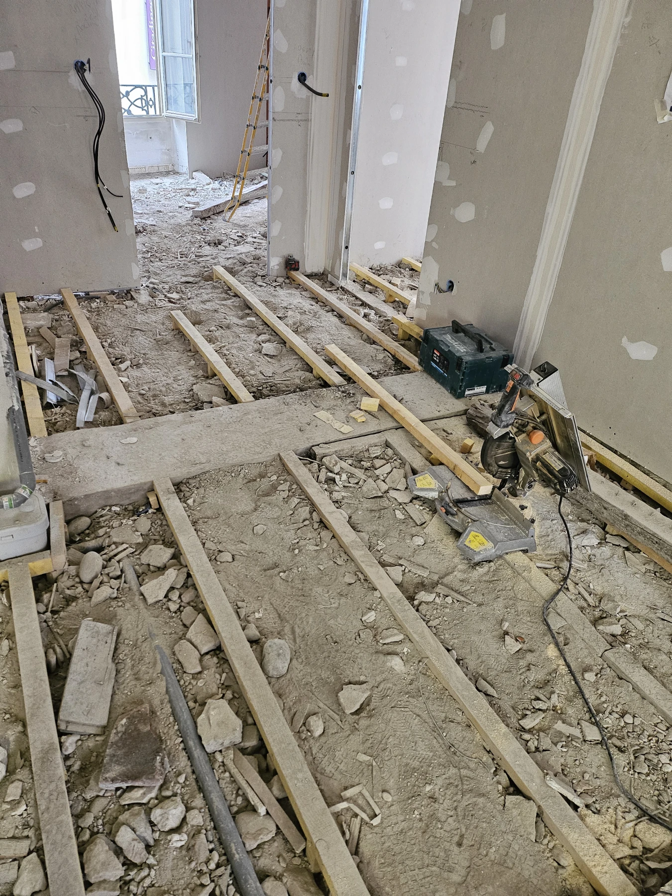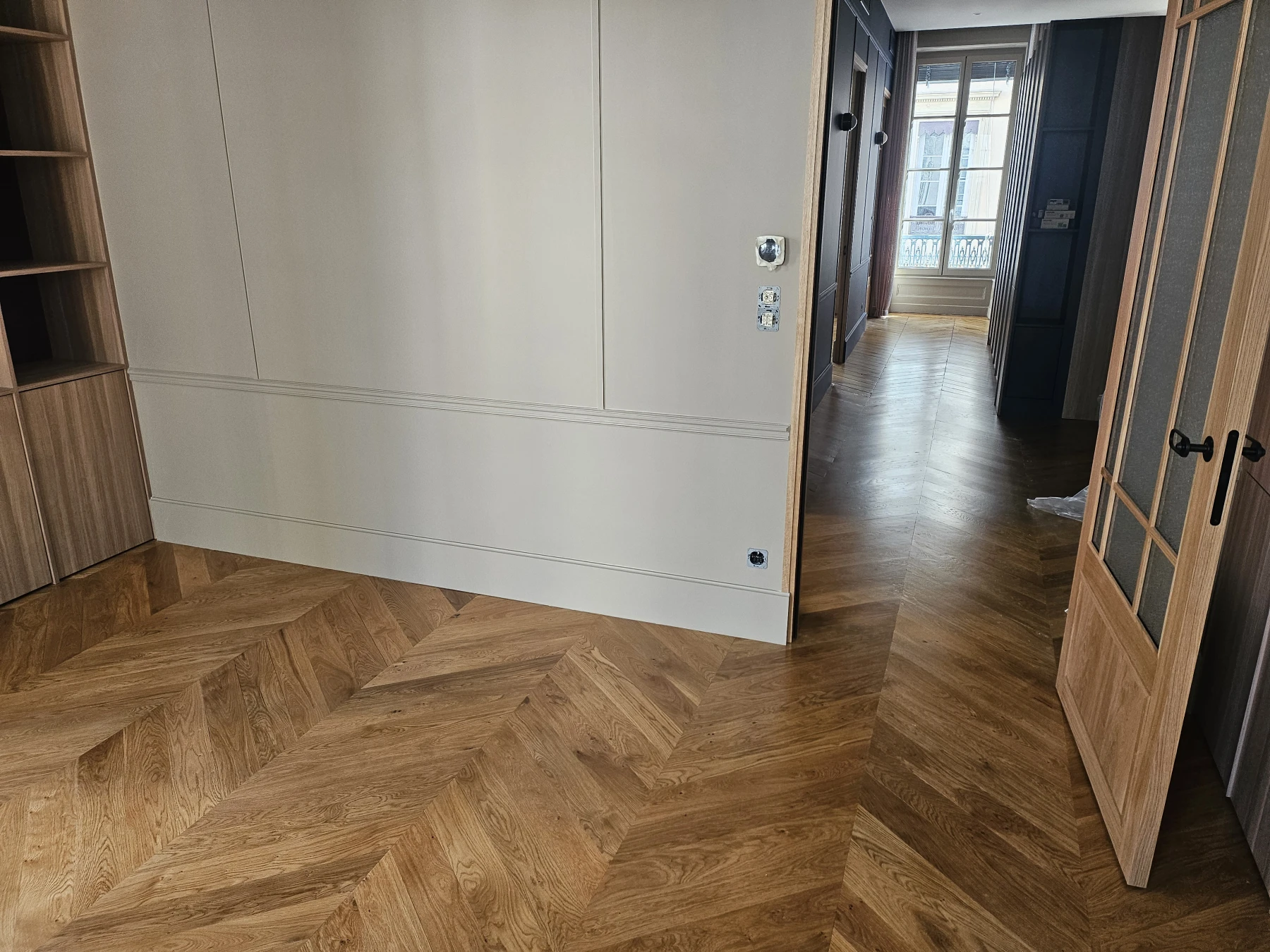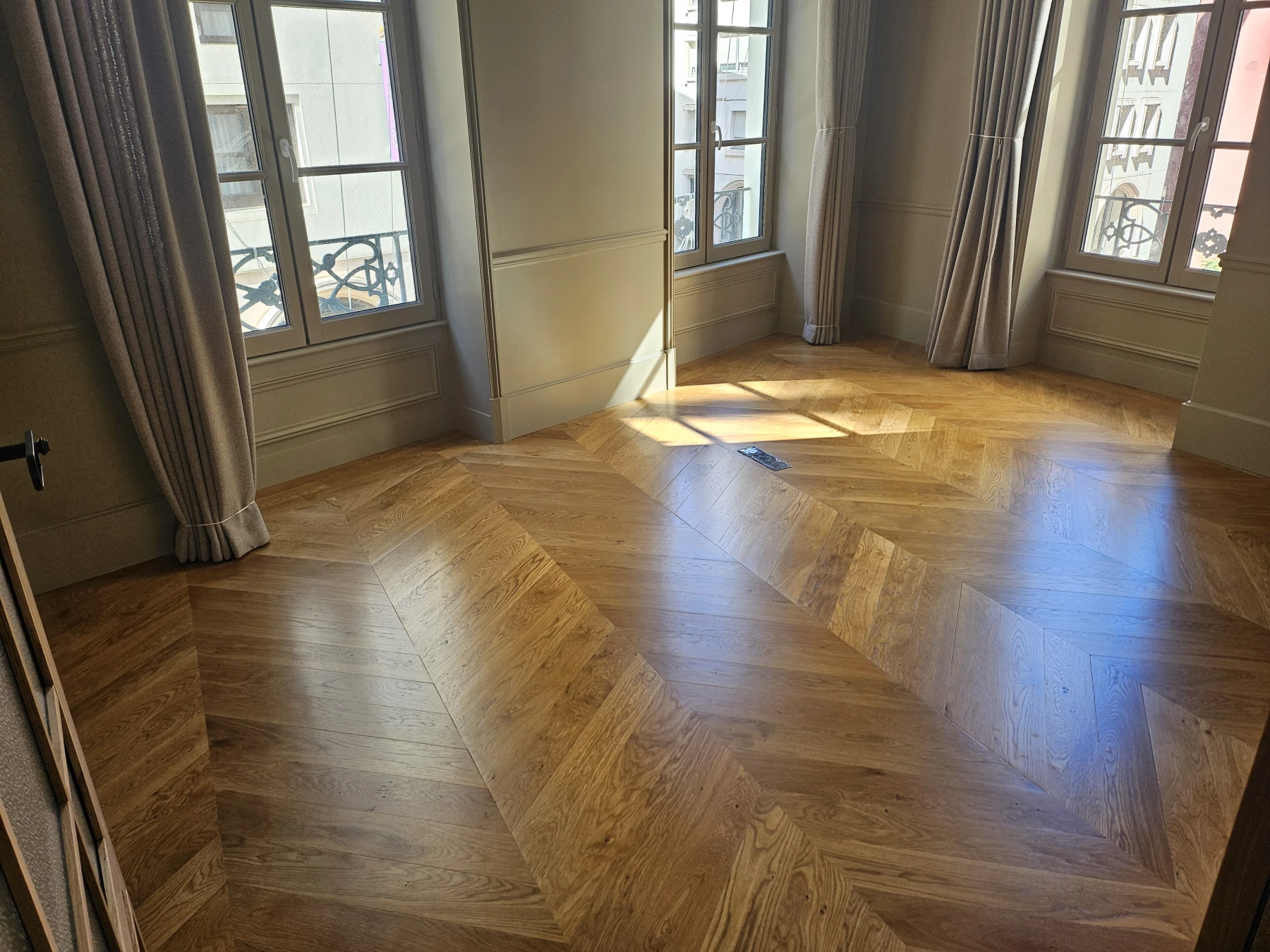 Nous sommes intervenus à Lyon pour une reprise complète d’un parquet ancien en pointe de Hongrie, un motif emblématique des appartements lyonnais de caractère. Ce parquet présentait une forte usure liée au temps, nécessitant une rénovation en profondeur afin de conserver son authenticité tout en améliorant son confort et son esthétique.