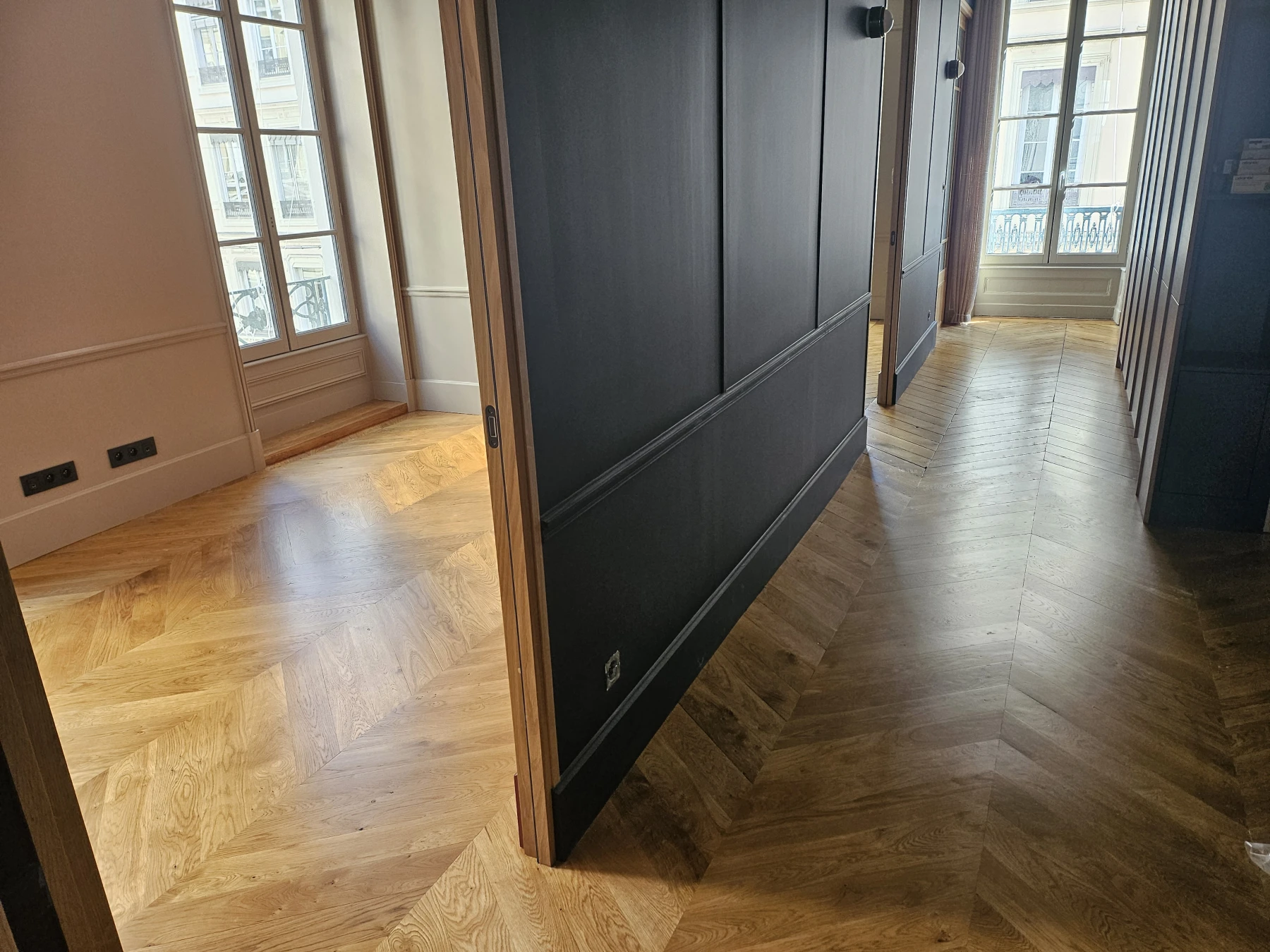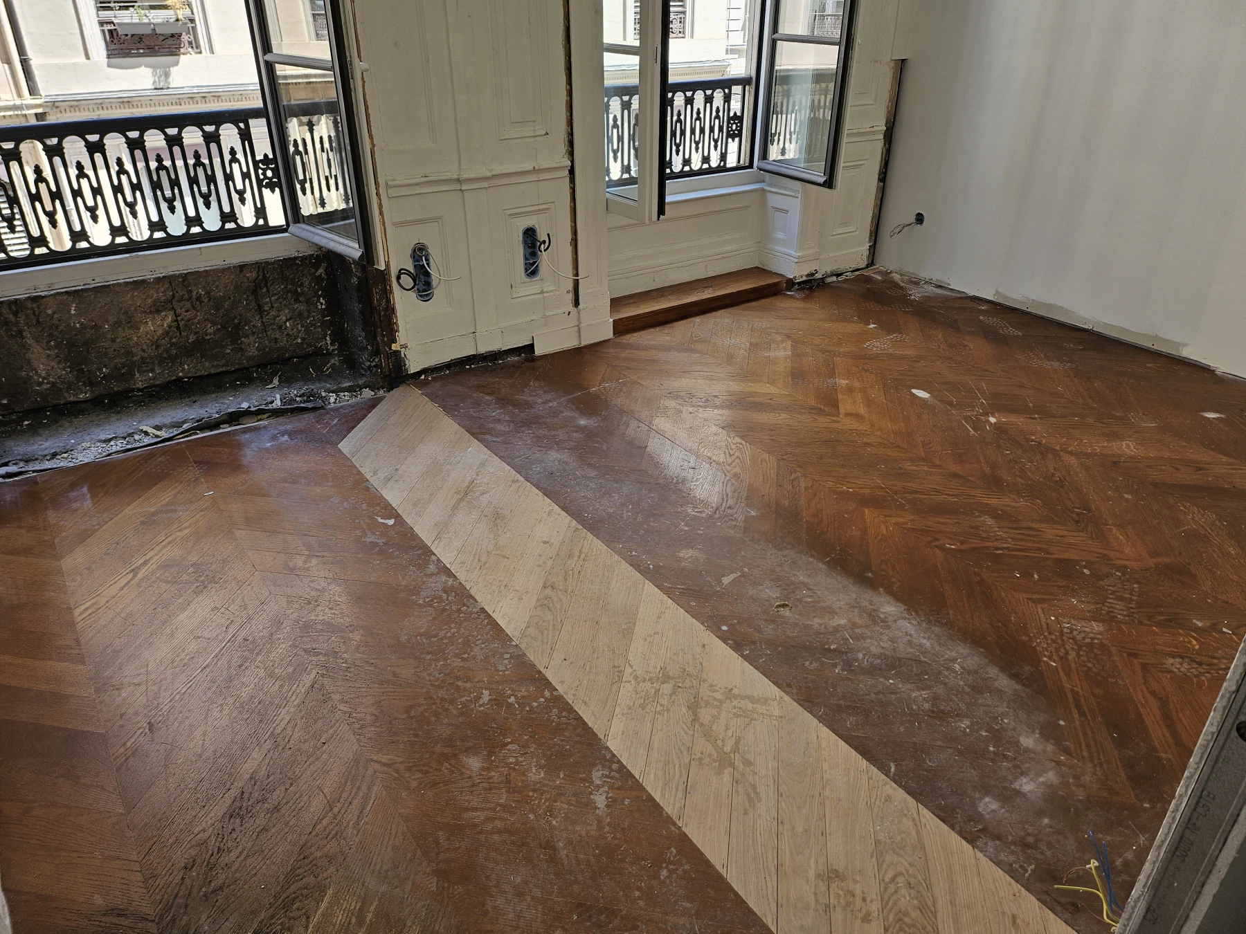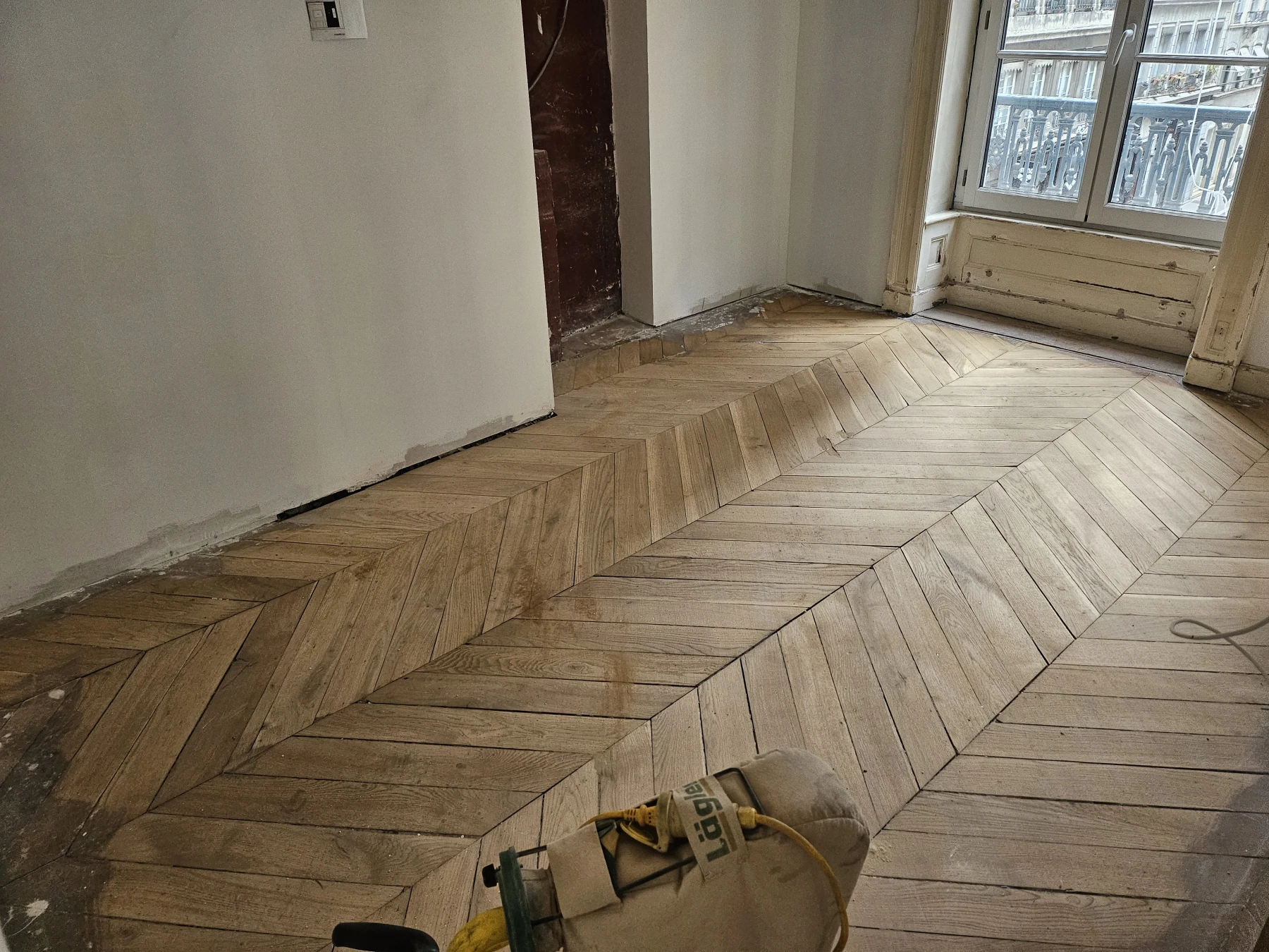 Rénovation de parquet ancien en pointe de Hongrie à Lyon