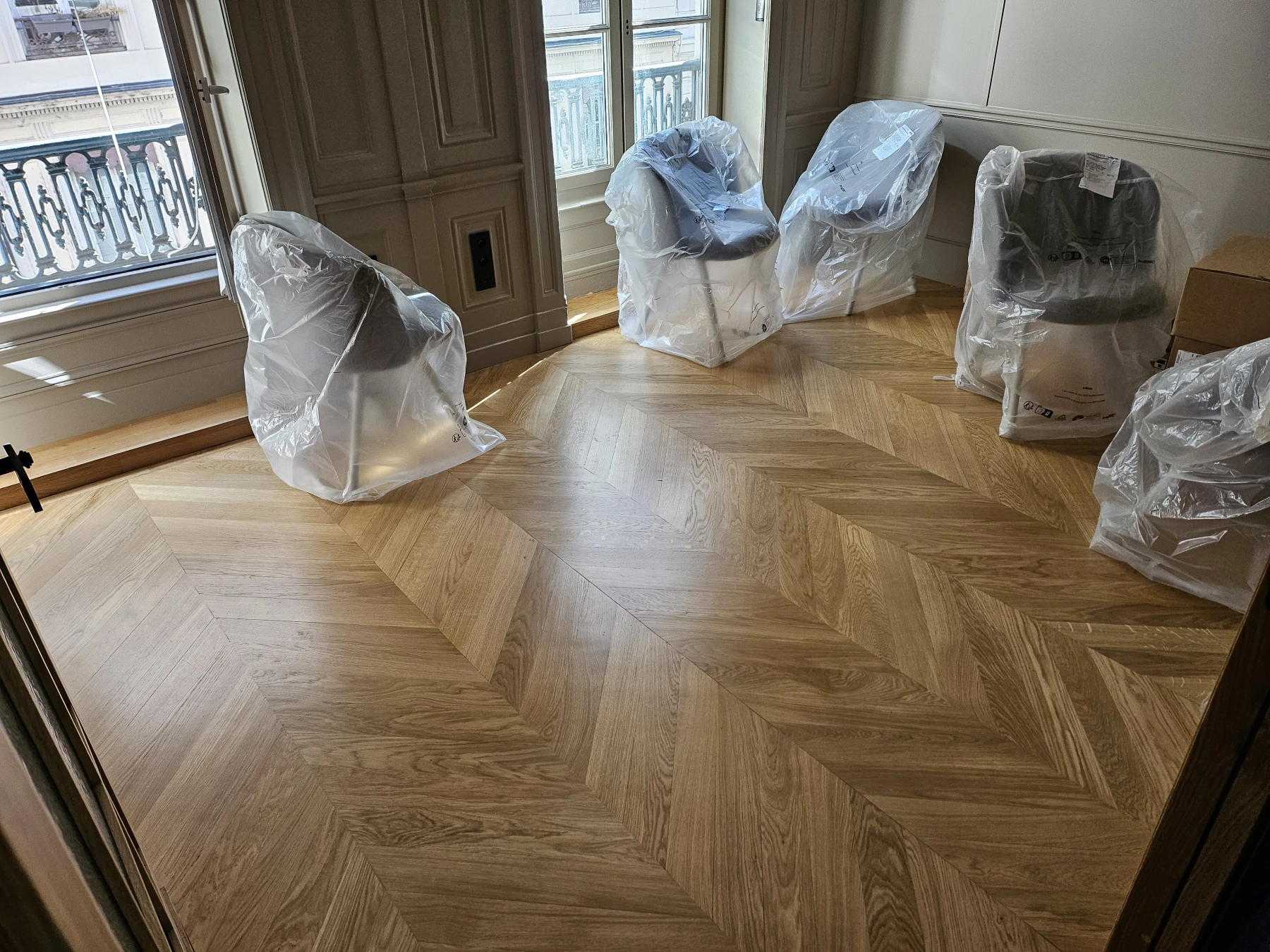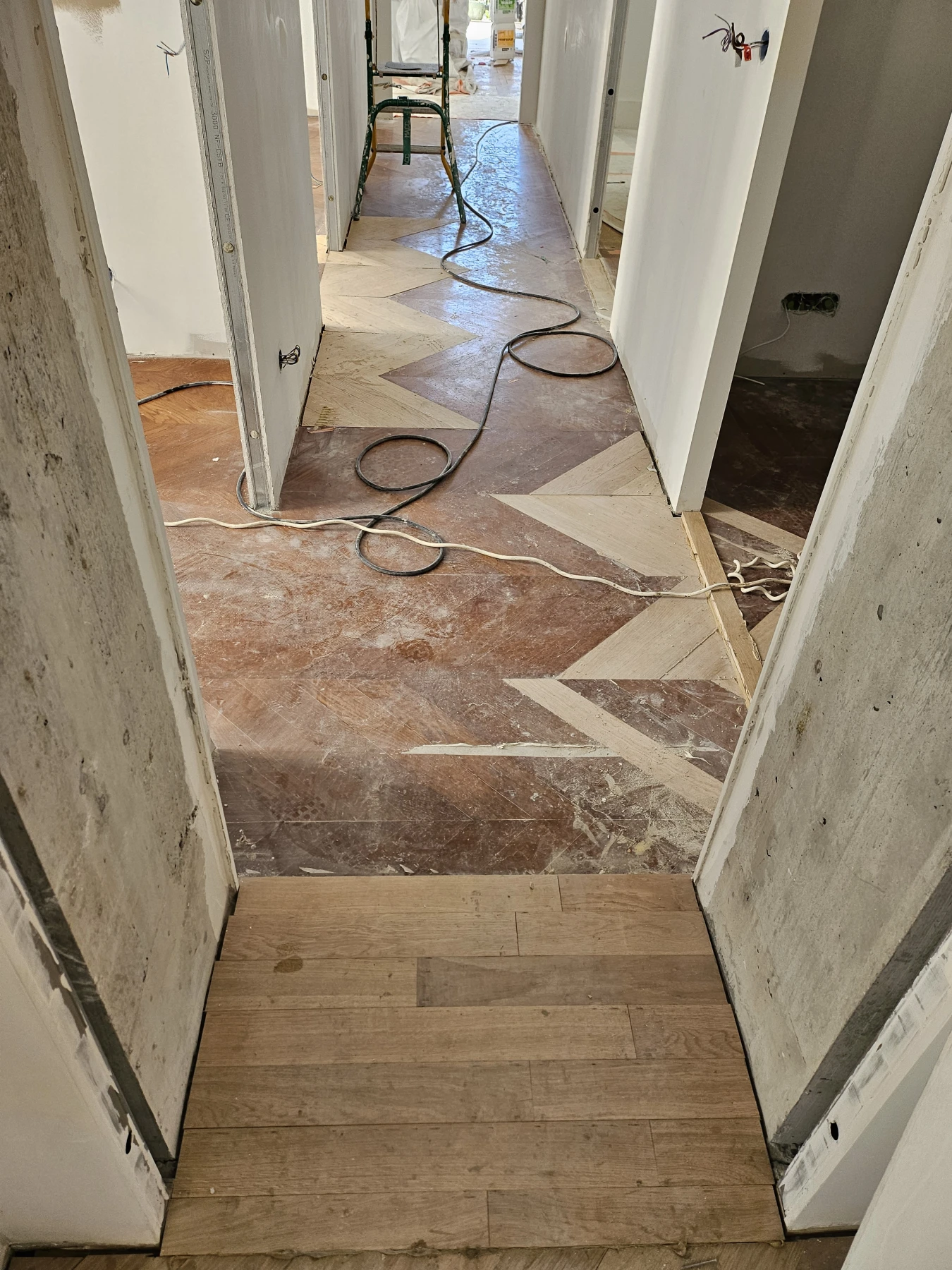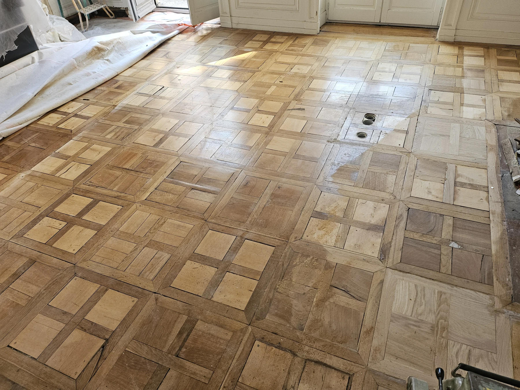Rénovation de parquet ancien en pointe de Hongrie à Lyon