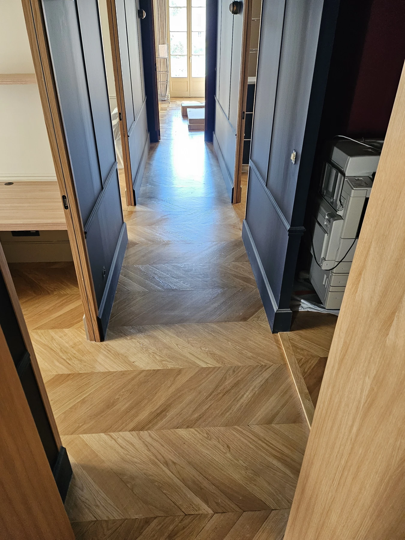 Grâce à un travail minutieux, le sol rénové offre aujourd’hui un rendu uniforme, élégant et professionnel, parfaitement adapté à un environnement juridique. Cette rénovation valorise le cabinet tout en assurant une excellente durabilité des sols.